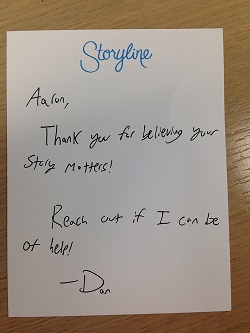 Now, I’m sure you can understand my excitement in receiving a handwritten note from Don Miller, whose books have so deeply shaped my thinking. And, this isn’t one of those photocopied prints of a handwritten note that important people sometimes give out. This is the real deal. Or is it…